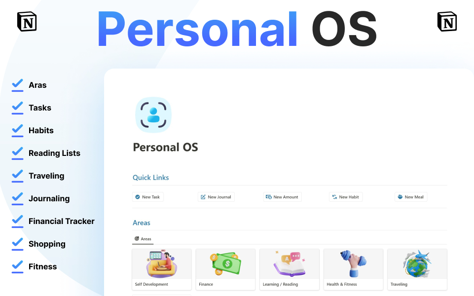 Welcome to Life OS, your all-in-one solution for mastering life's complexities and achieving your goals with precision. Life OS is a comprehensive organization template designed to empower you across various facets of life, from personal development to project management, health, and beyond.